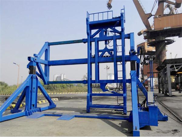 三.該集裝箱翻轉(zhuǎn)機在平整,經(jīng)過硬化的地面上使用,適用糧庫、碼頭等場所。